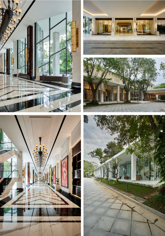 Dalam project besar ini Paramadharma berkolaborasi dengan ARCdesign Architects sebagai konsultan desain arsitektur yang menyatukan pemahaman sebuah konsep dengan sentuhan gaya Bali. Interior Grand Ballroom ini di desain by Indesign Domus dan Damar Interior mensupport memproduksi loose furniture. built in furniture oleh Bika.